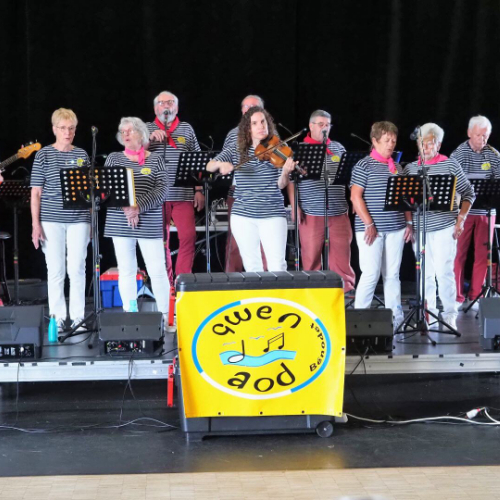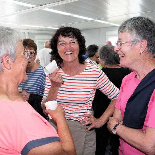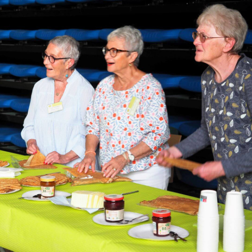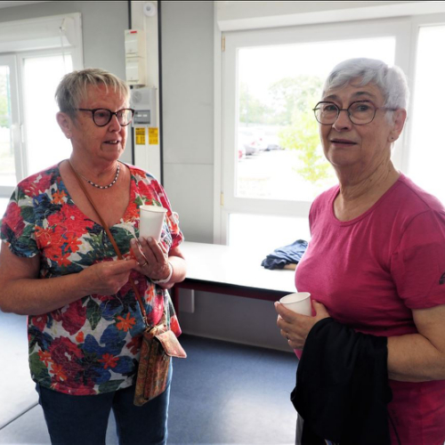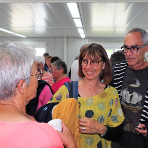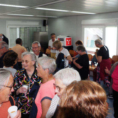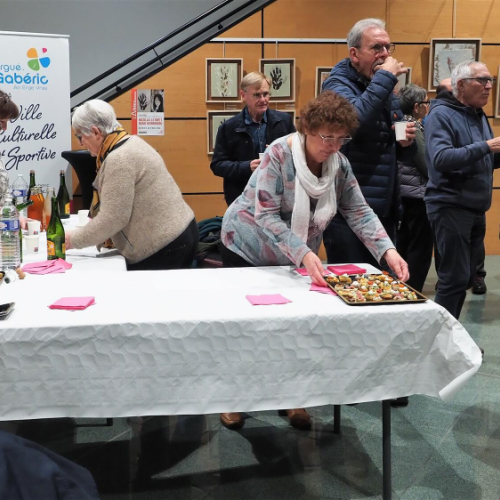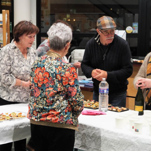 Pot offert par l'association Entraide Cancer pour remercier les organisateurs et encadrants des différentes marches du dimanche 1er septembre 2024. Prises de paroles par Entraide Cancer et par l'adjoint au maire d'Ergué-Gabéric, monsieur Damien Abolivier.
