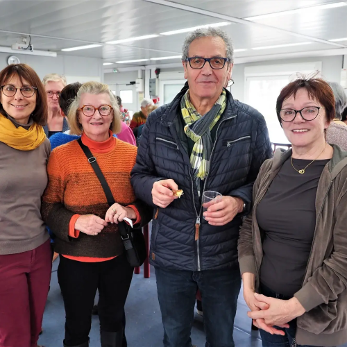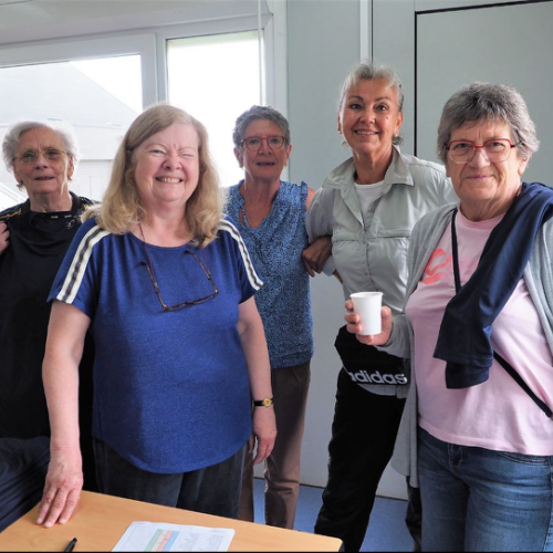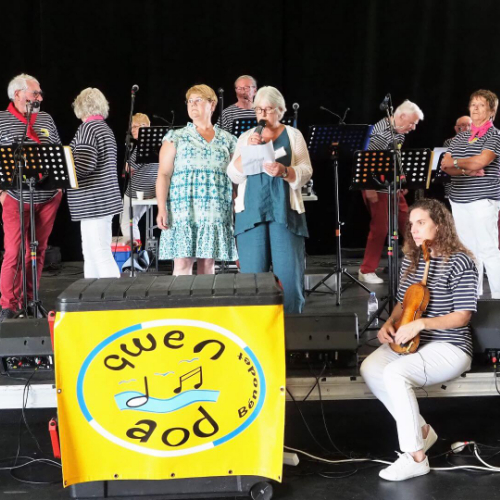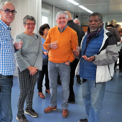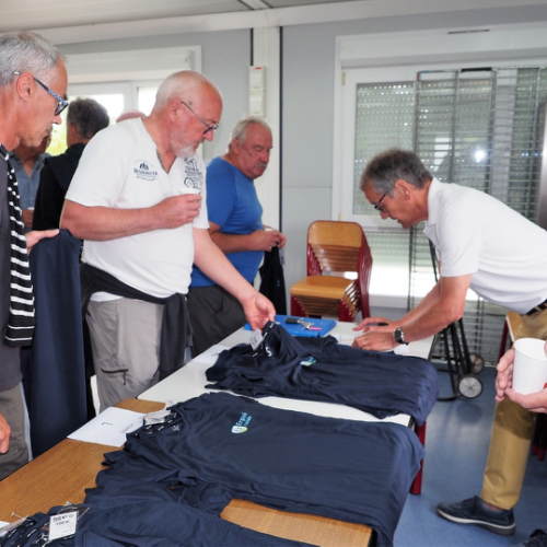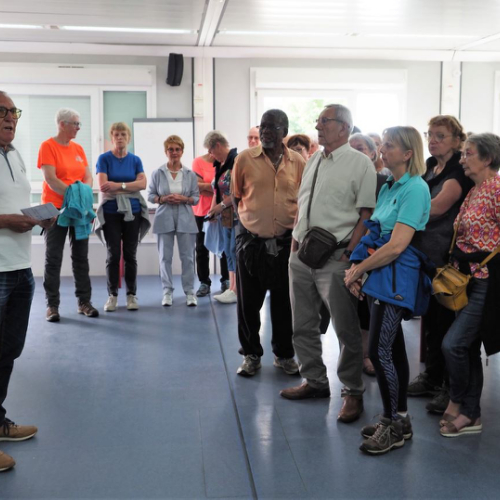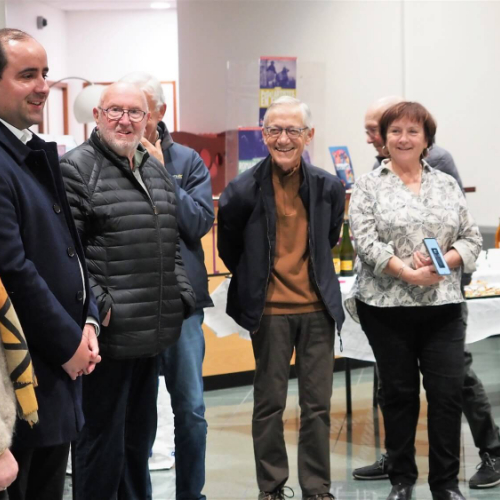 Pot offert par l'association Entraide Cancer pour remercier les organisateurs et encadrants des différentes marches du dimanche 1er septembre 2024. Prises de paroles par Entraide Cancer et par l'adjoint au maire d'Ergué-Gabéric, monsieur Damien Abolivier.